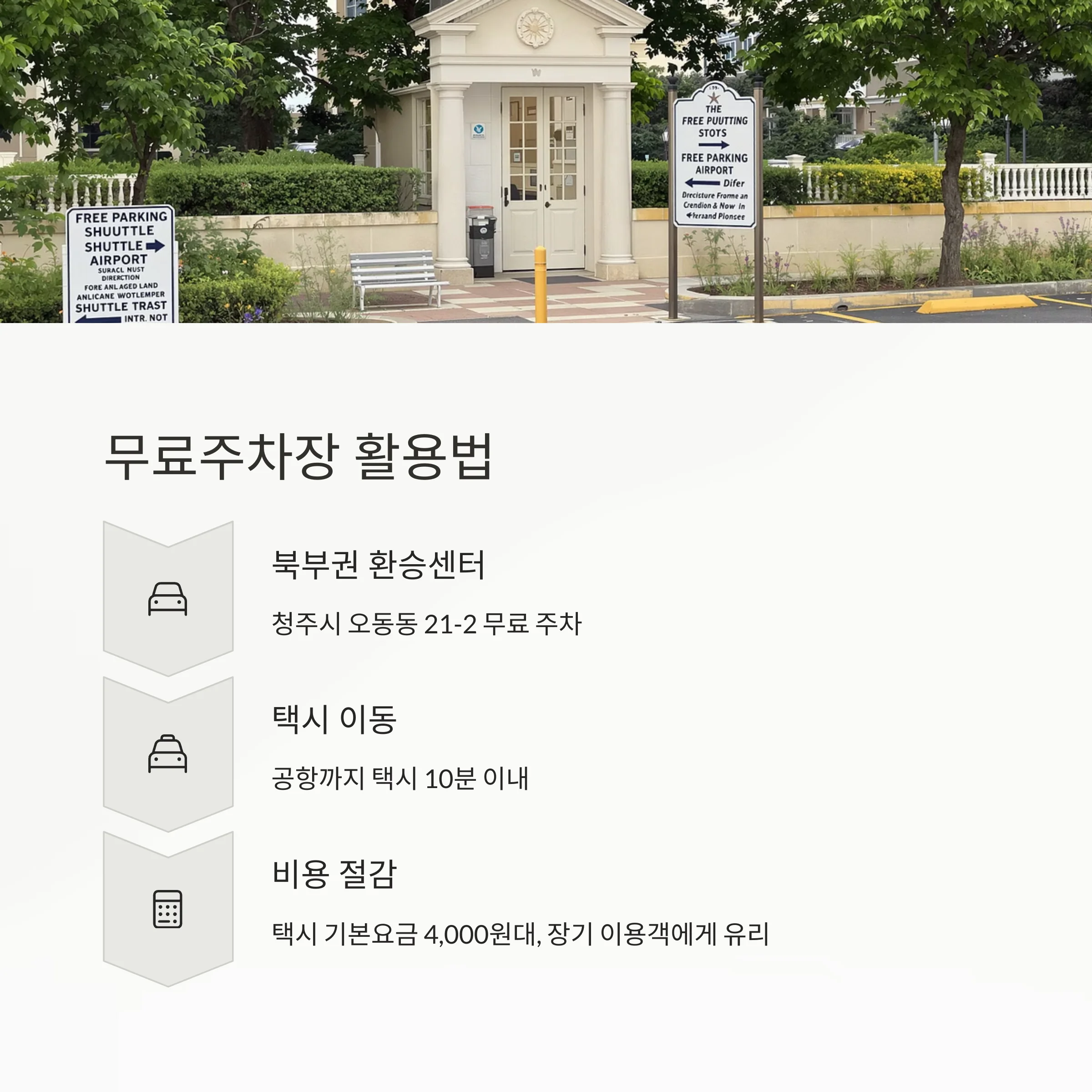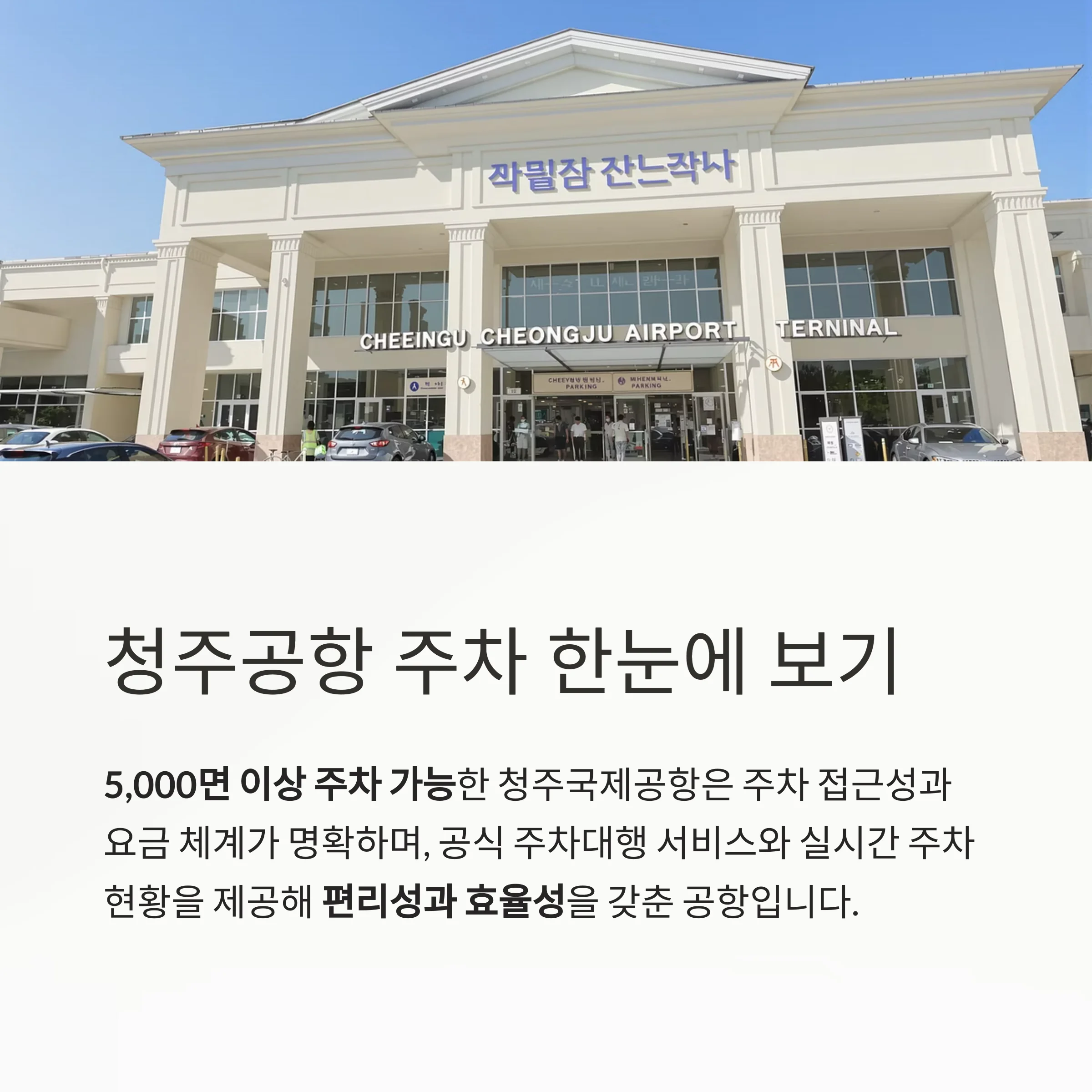 • 주차 실시간 확인: 청주공항 홈페이지 ‘주차장 현황’ 메뉴 이용
