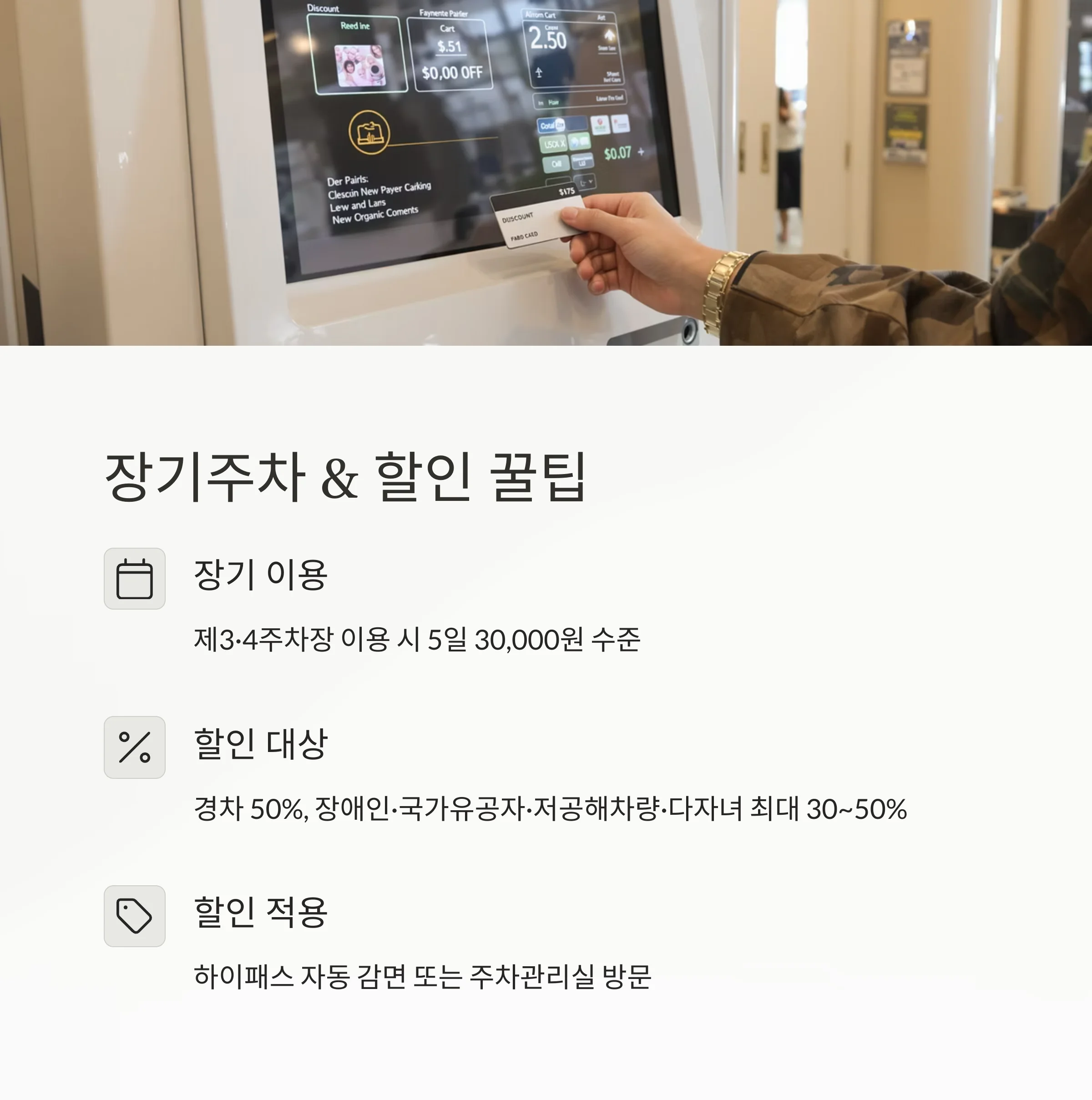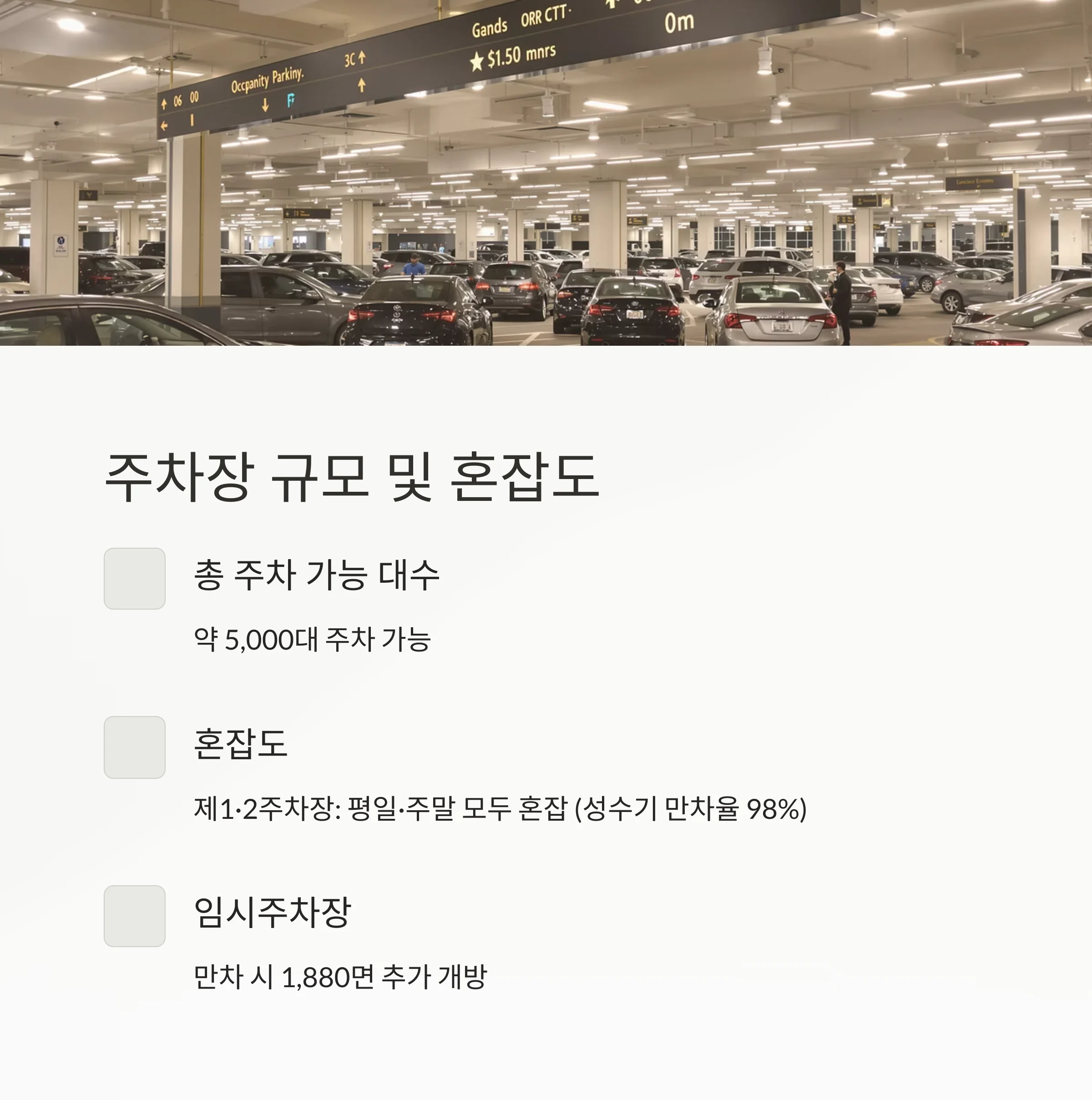 • 장기 주차 시: 제3·4주차장 (도보 8~10분, 요금 저렴)